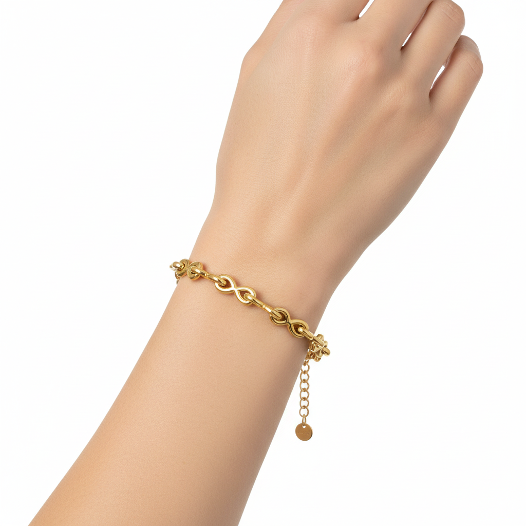 Discover Aulala's Figure 8 Gold Plated Bracelet—a bold statement piece that refuses to fade. Crafted with gold plating over stainless steel, this bracelet laughs in the face of discolouration and tarnish. Waterproof, sweat-resistant, and fragrance-proof, it's built for the fearless. Whether you're dancing through Ibiza nights or conquering your week, this bracelet keeps its lustre. Arrives in an elegant gift box, ready to turn heads.
