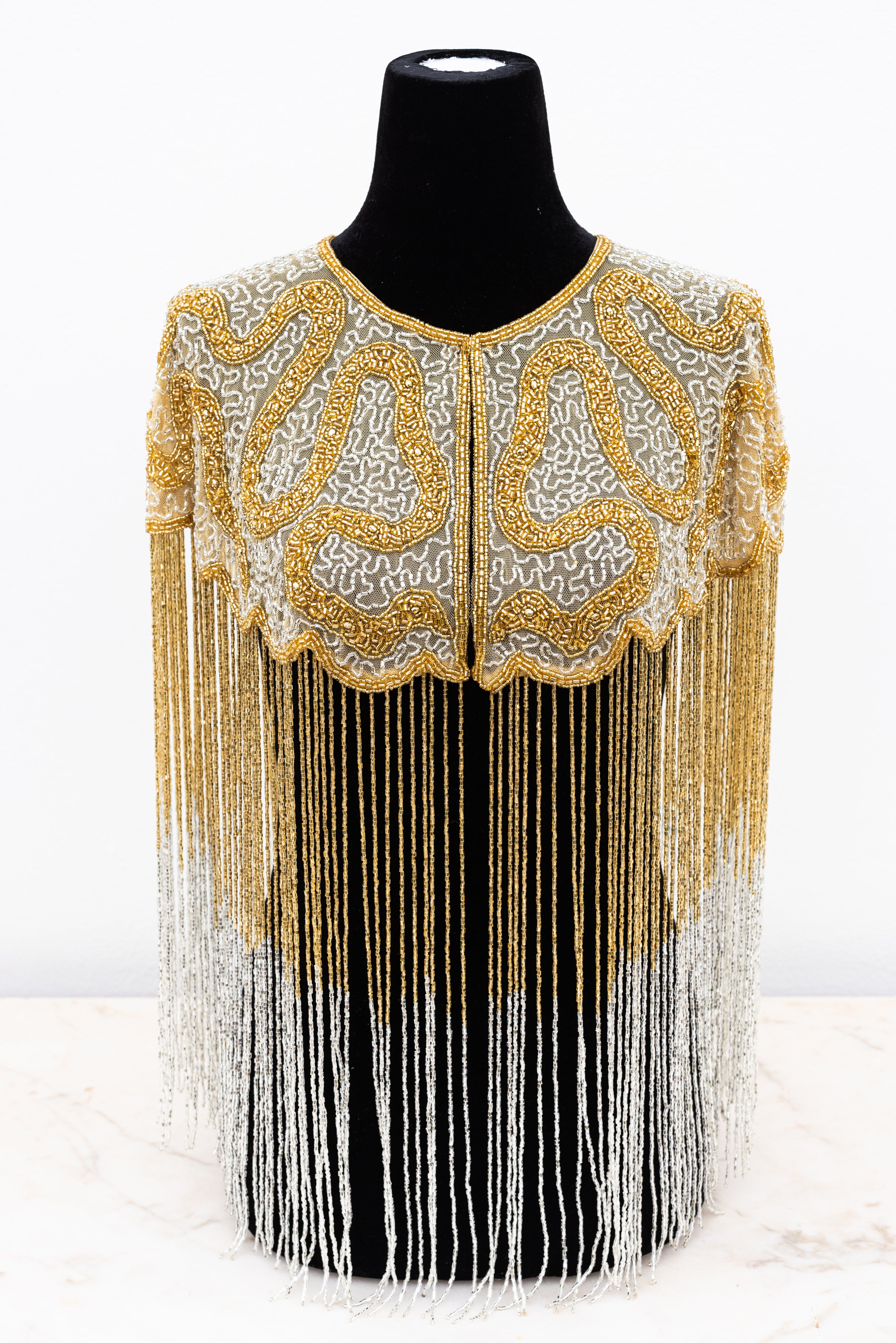 Glass Bead Cape Deco 2 Tone Crystal & Gold
