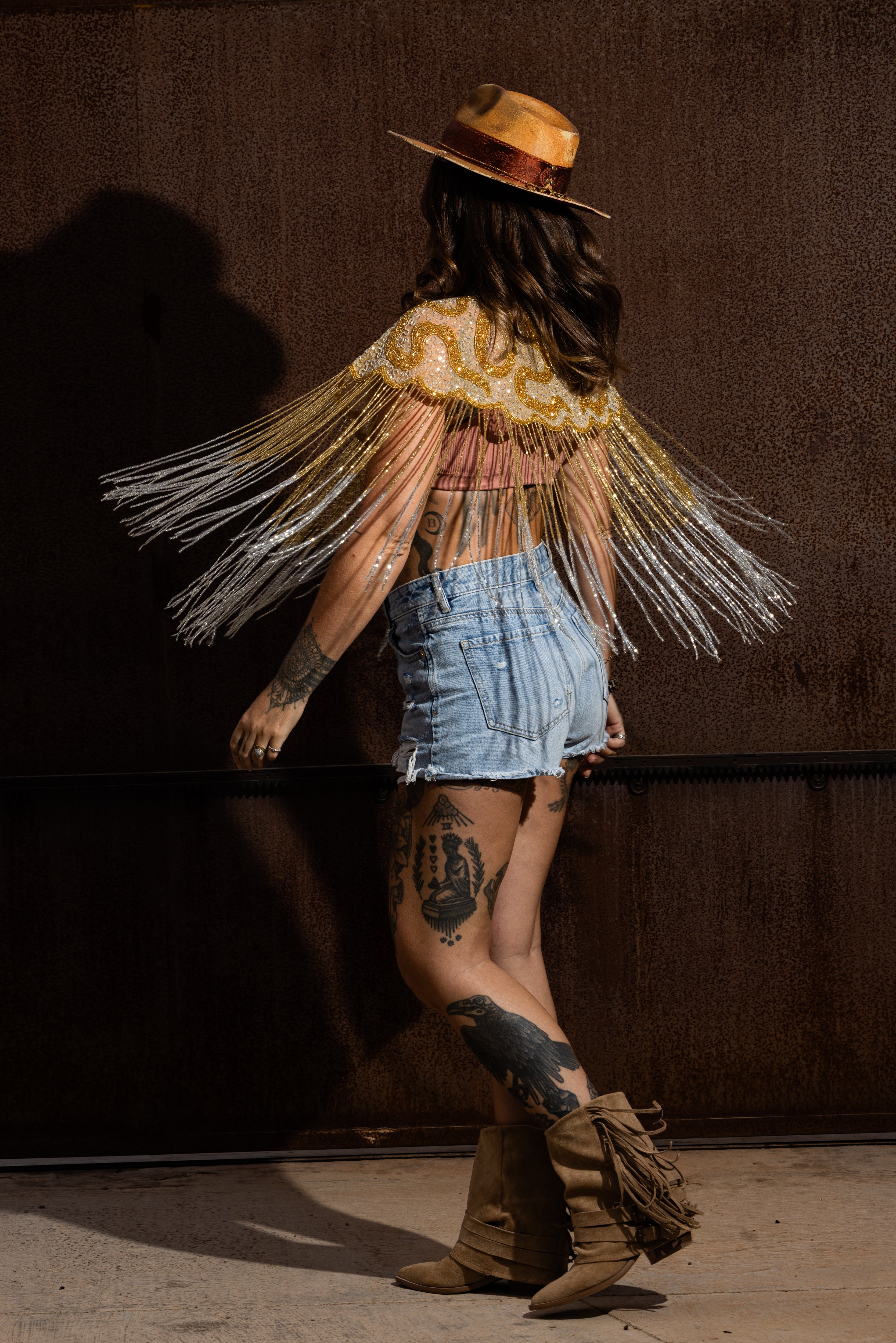 Adorned with shimmering glass beads, this unique one-size cape captures the essence of glamorous disco nights and festival elegance. Perfect for effortlessly dressing up or down, it adds radiant sparkle to any look.