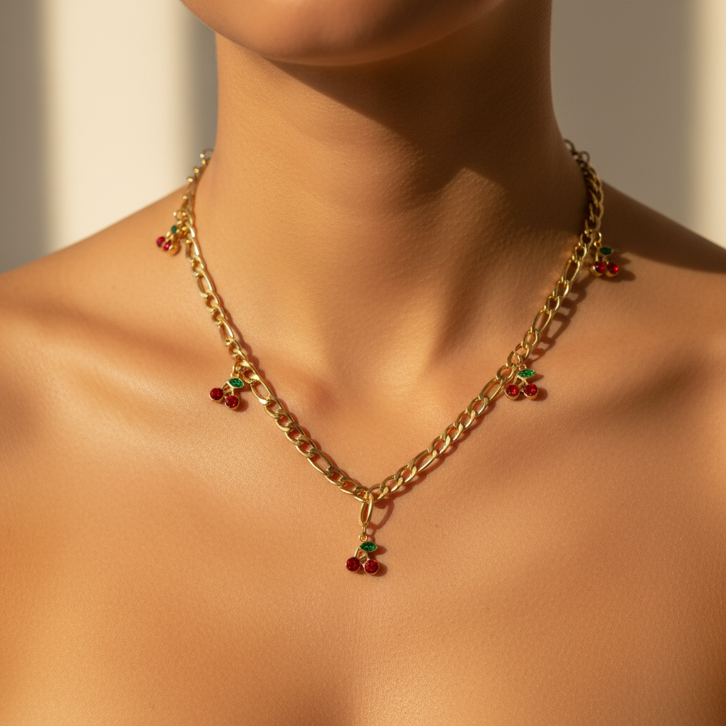 Cherry Diamante Chain Gold Plated Necklace