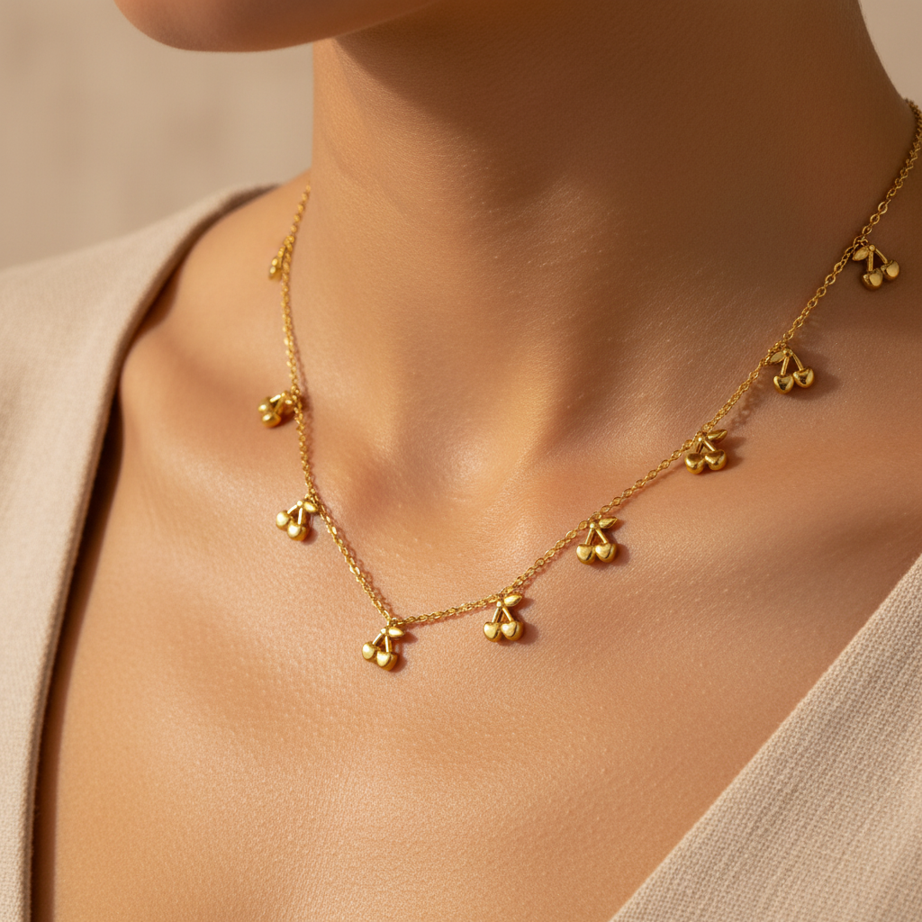 Cherry Charm Gold Plated Necklace